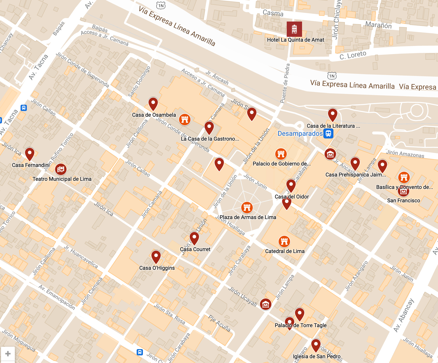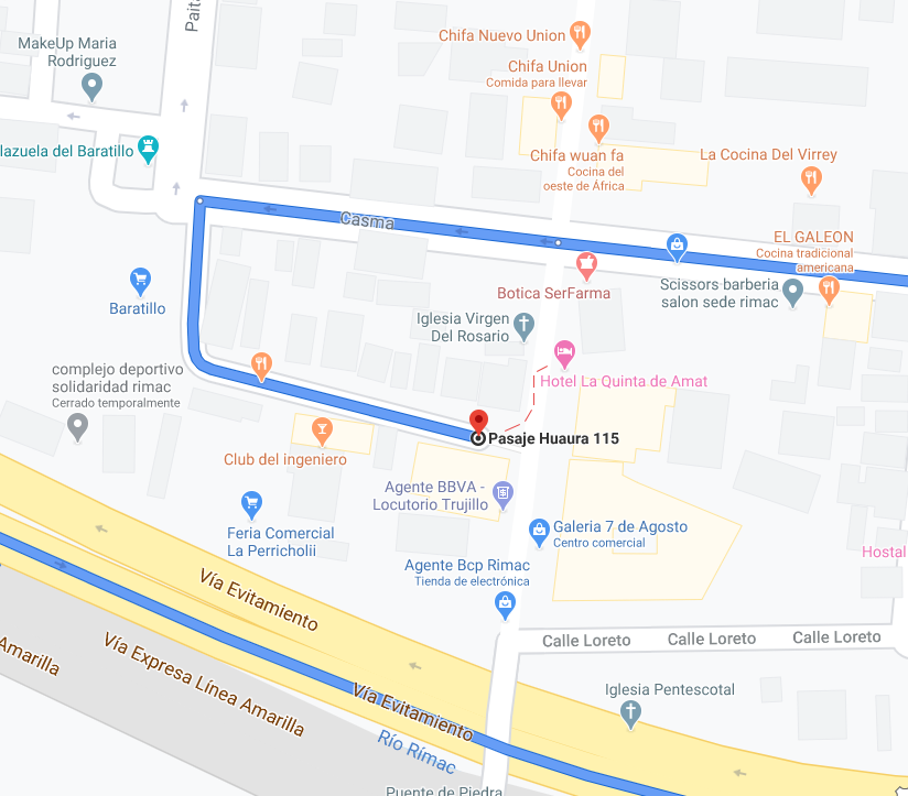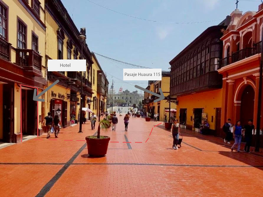 Taxi: Nuestra calle es peatonal por lo que aconsejamos indicar cómo destino final más próximo el Pasaje Huaura 115, al ser una calle a pocos metros del hotel, donde podrá descargar su equipaje o como alternativa la calle Jirón Casma 115.
